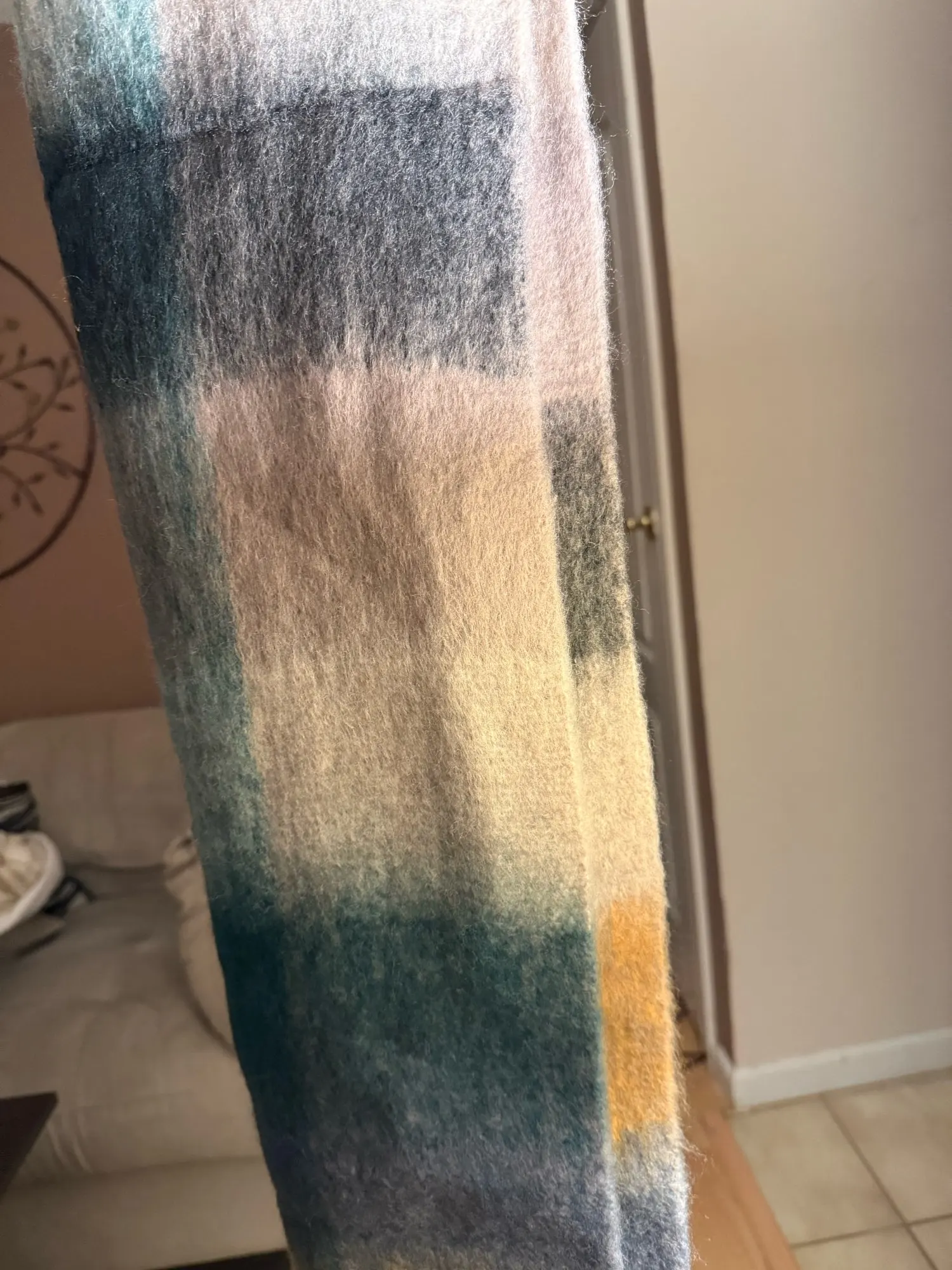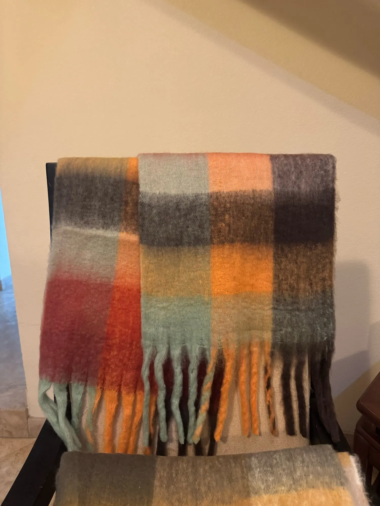 Oversized shawl and wrap style offers versatile wearing options, use as a scarf, wrap, or neckerchief.