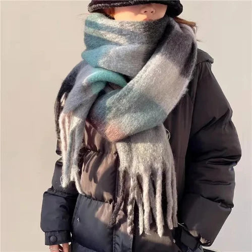 Stay warm and stylish with this thick cashmere-style scarf for women, soft pashmina shawl with rainbow colours and tassels, perfect for winter comfort.