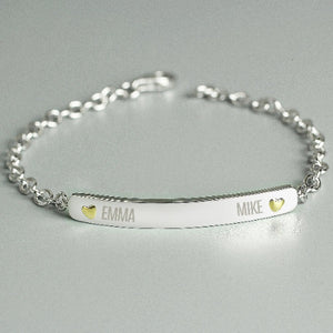 Personalised Two-Name Sterling Silver & 9ct Gold Bar Bracelet – Custom Jewelry Gift