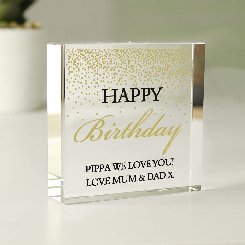 This Personalised Gold Confetti Crystal Token is sure to add a touch of colour to any room.