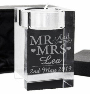 Personalised Mr & Mrs Glass Tea Light Candle Holder ¦ Personalised Gifts