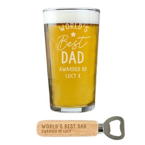 Personalised World’s Best Pint Glass & Bottle Opener ¦ Custom Gift Set