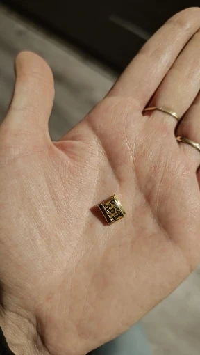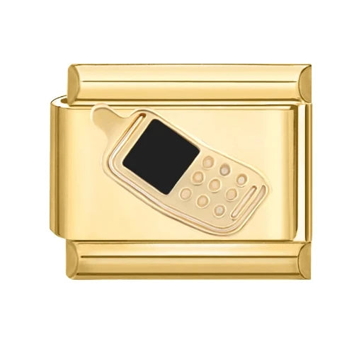 Gold charm with a black and gold phone design